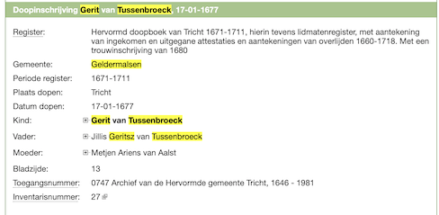 Gerit Jillisz van Tussenbroek doop