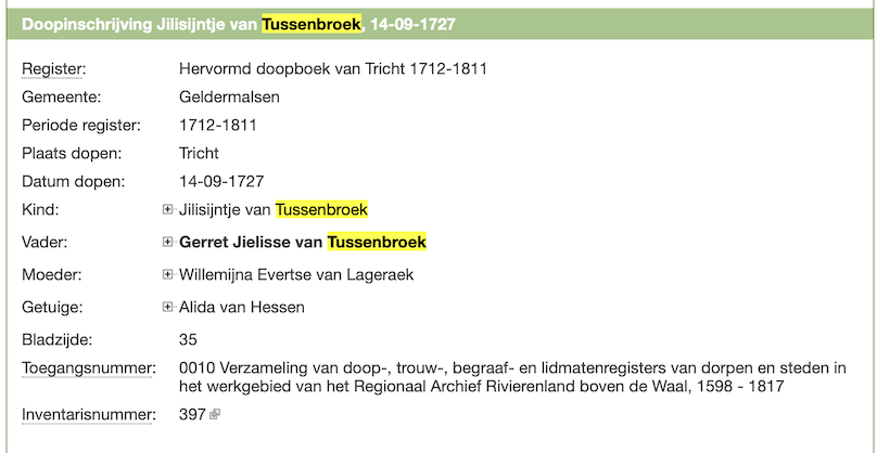 Jilisijntje van Tussenbroek doop