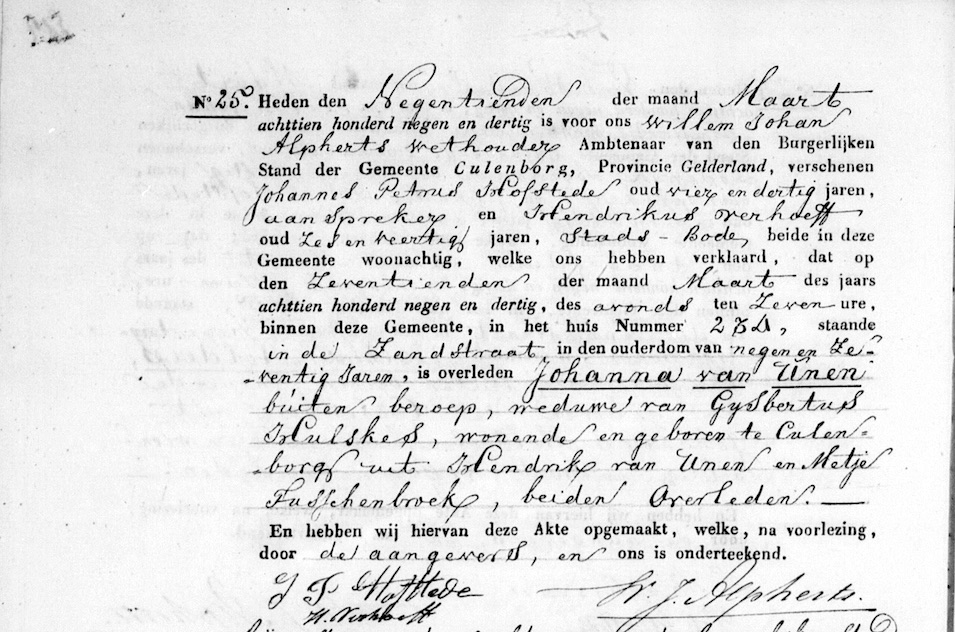 GldA, ovl. reg. Culemborg 1839, akte 25
