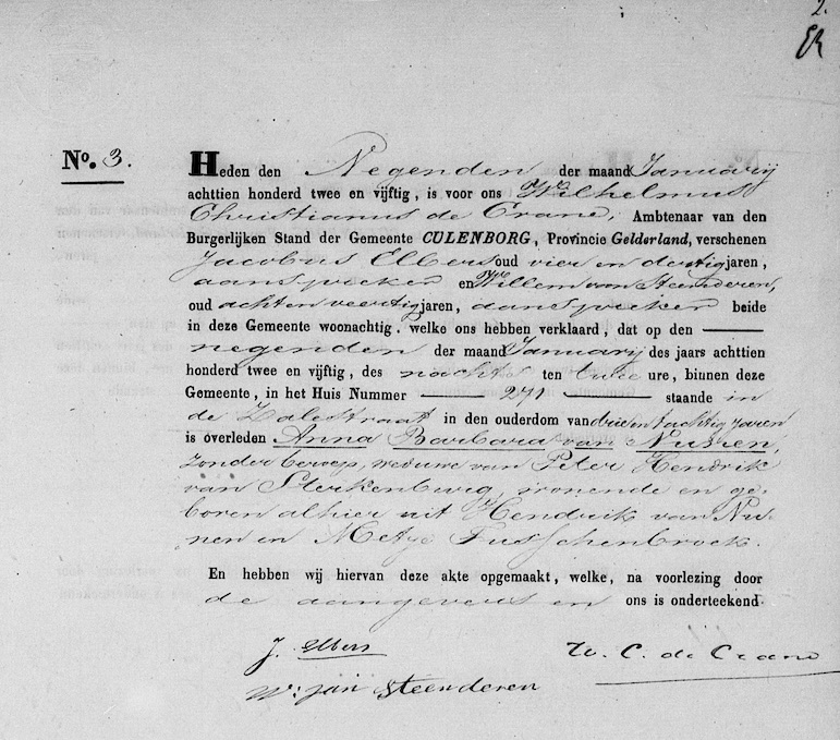 GldA, ovl. reg. Culemborg 1852, akte 3