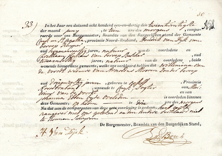 BHIC, ovl. reg. Cuijk en Sint Agatha 1831, akte 33