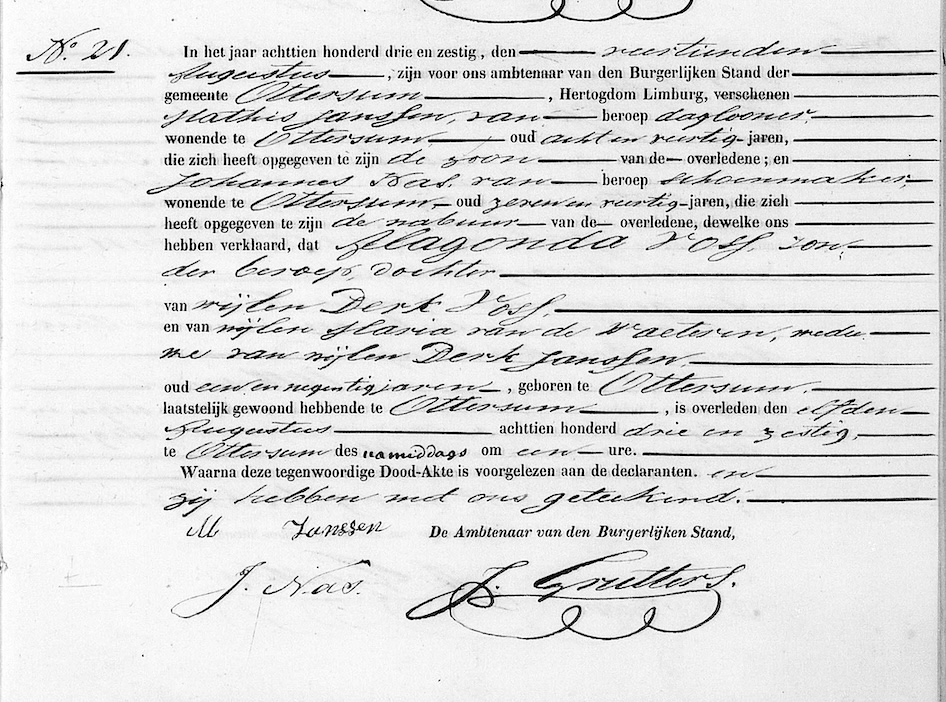 Aezel, overl .reg. Ottersum 1863, akte 21