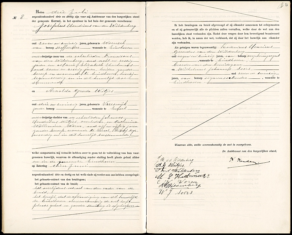 BHIC, huw. reg. Eersel 1933, akte 8