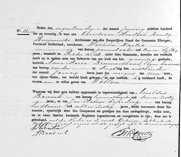 GeldA, geb. reg. Eibergen 1876, akte 11