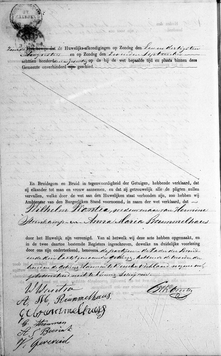 Eibergen huw. 19-09-1873 Wilhelm Wantia en Anna Maria Brummelhaus