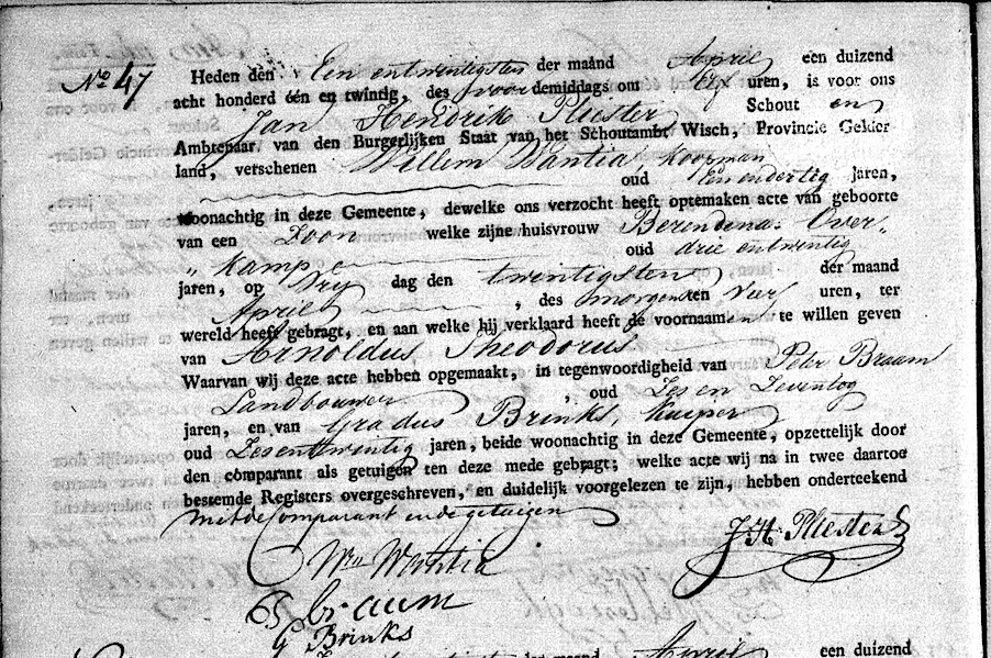 Wisch geb. 20-04-1821 Arnoldus Theodorus Wantia