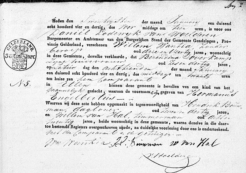 GldA, geb. reg. Gendringen 1834, akte 5