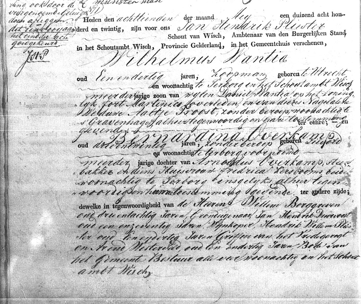 Wisch huw. 18-05-1820 Wilhelmus Wantia en Bernardina Overkamp