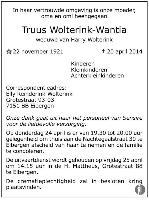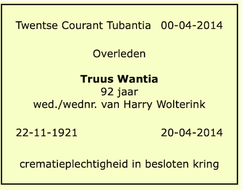 Geertruid Maria Wantia overlijden