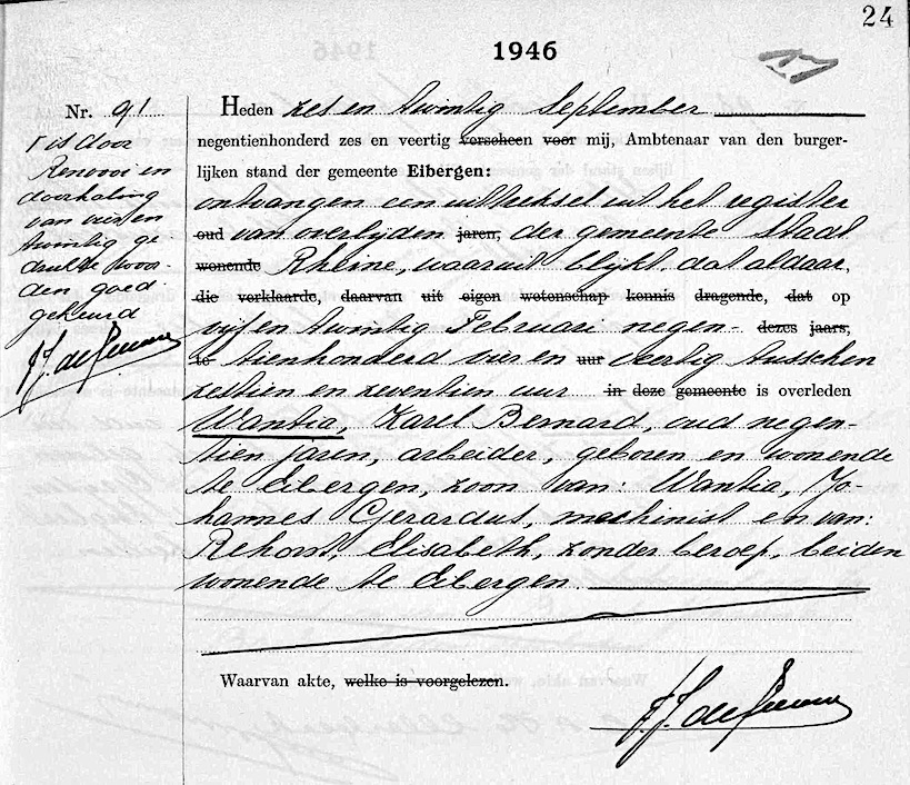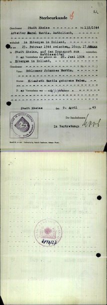 Karel Bernard Wantia overlijden
