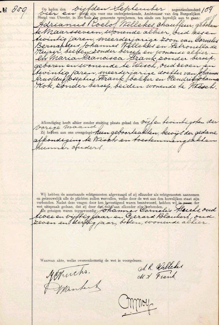 Utrecht huw. 05-09-1934 Adrianus Willekes en Maria Francisca Frank