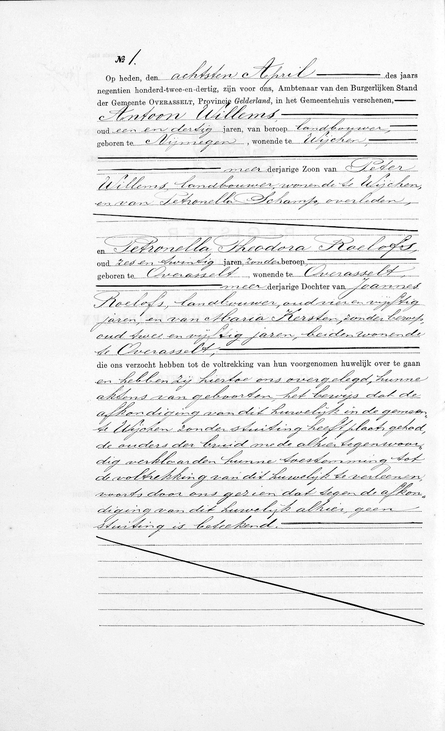 GeldA, huw. reg. Overasselt 1932, akte 1