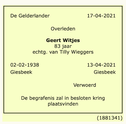 Everhardus Maria Witjes overlijden