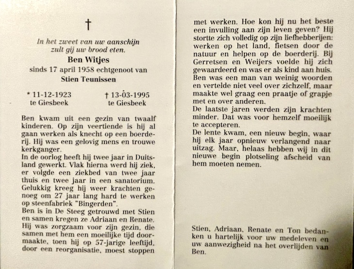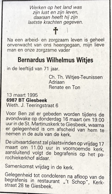 Bernardus Wilhelmus Witjes overlijden