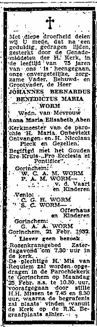 Johannes Bernardus Benedictus Maria Worm begraven