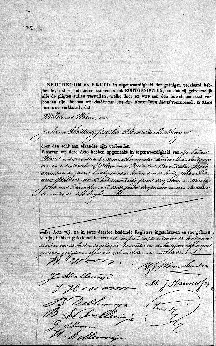 Doesburg huw. 09-01-1873 Wilhelmus Worm en Julia Ch. J. H. Dellemijn