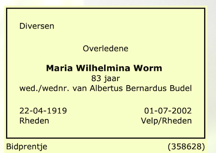 Maria Wilhelmina Worm overlijden