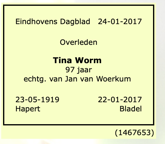 Martina Maria Worm overlijden