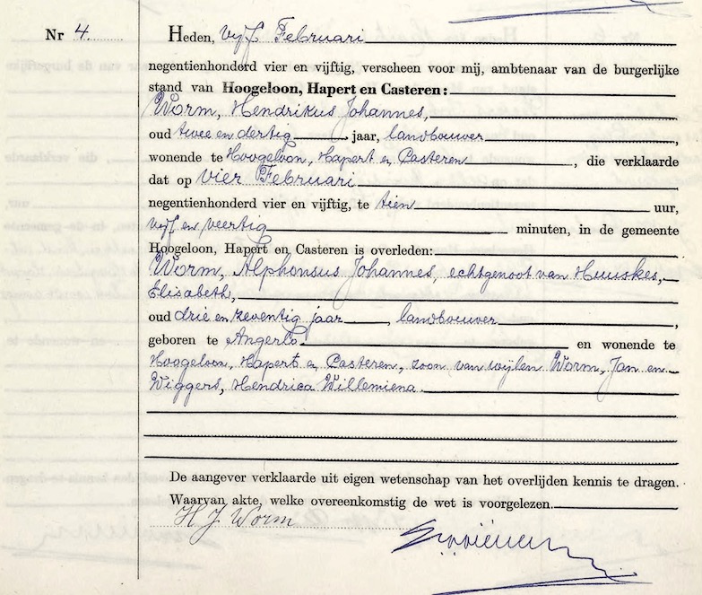 Dig. Stamboom Eindhoven, ovl. reg. Hoogeloon, Hapert en Casteren 1954,, akte 4