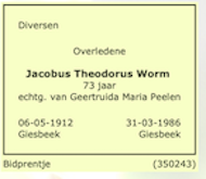 Jacobus Theodorus Worm overlijden