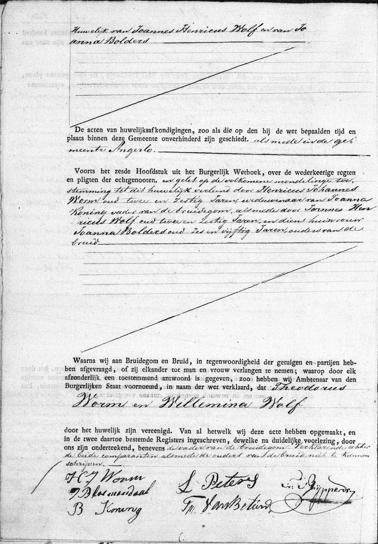 Doesburg huw. 01-05-1835 .Theodorus Worm en Willemina Wolf.