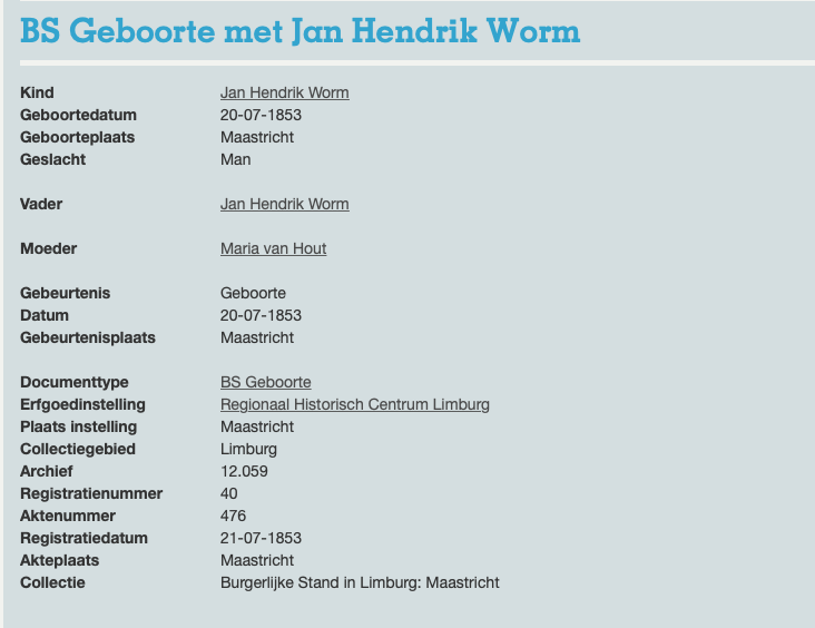 Johannes Hendricus Worm geboorte