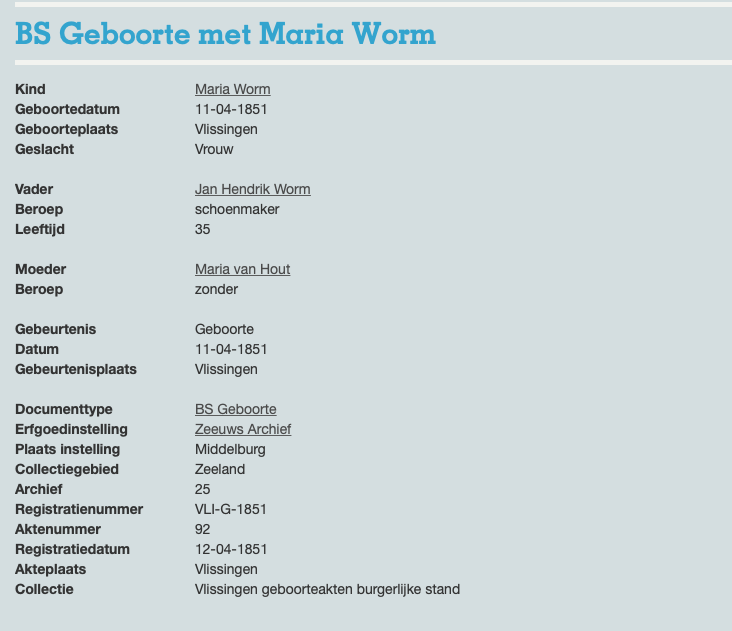 Maria Worm geboorte