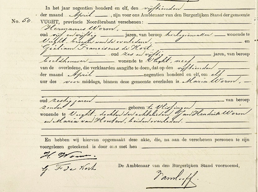 BHIC, overl. reg. Vught 1911, akte 50