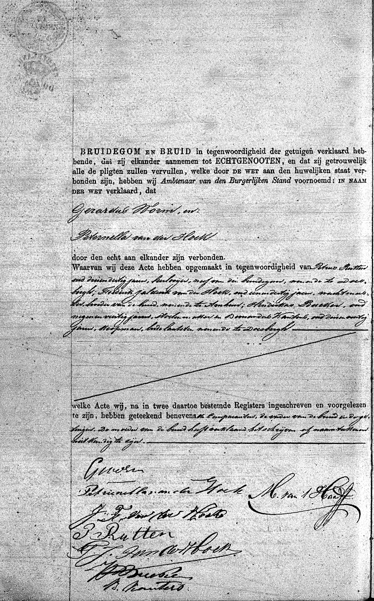 Doesburg huw. 31-10-1876 Gerardus Worm en Peternella van der Hoek